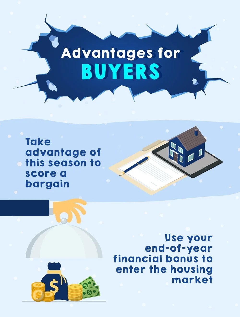 But in winter, especially in colder climates when everything is covered in snow, sellers and buyers alike can also take advantage of the season to score a good deal on real estate. Experts say that the idea that homes are very tough to sell or buy in the winter might be a myth. When temperatures drop, the market could be full of eager sellers and serious buyers who are both looking to score a cold, sweet deal.
