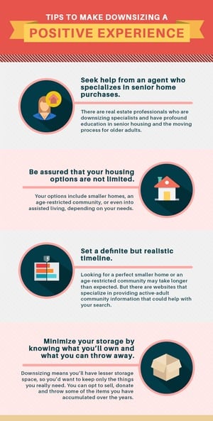 Be assured that your housing options are not limited. Whether you're looking into moving to a smaller home, an age-restricted community, or even into assisted living, remember to choose a home that meets your needs and current lifestyle, where you’ll be more comfortable and happy.
